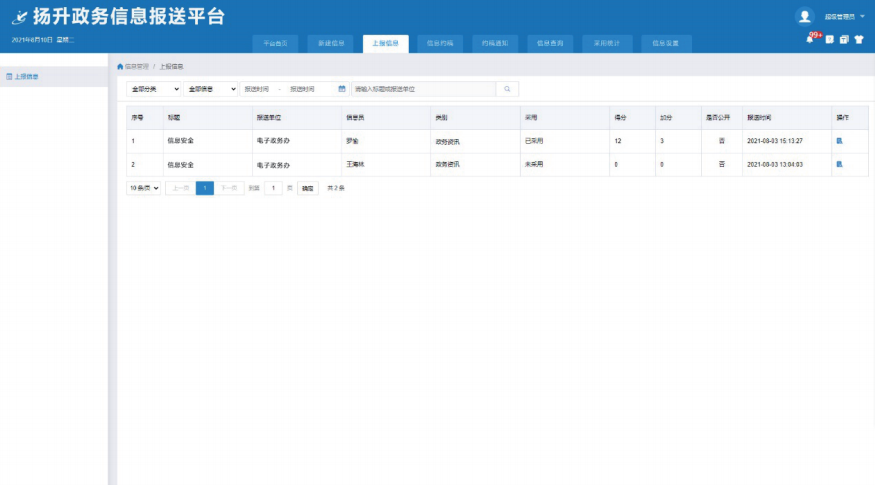 政務(wù)信息報送平臺是用電子化手段代替?zhèn)鹘y(tǒng)的傳真、電話、紙質(zhì)信函等介質(zhì),實現(xiàn)各級單位之間的重要信息、簡報、專報、文件等信息的下發(fā)與上報,進行信息采編與發(fā)布及約稿管理,提高工作效率、加強各級部門之間(橫向和縱向)的業(yè)務(wù)交流與信息共享。實現(xiàn)信息上報、信息采用、刊物制作、刊物送審、刊物發(fā)布、積分統(tǒng)計等功能的信息管理與服務(wù)平臺。政務(wù)信息報送平臺在全國用于150余家典型區(qū)縣級政府典型用戶。